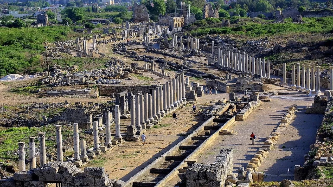 Explore one of the largest ancient cities in the Pamphylia region, which was the capital of Pamphylia. Visit the Roman Baths, Agora, Colonaded Street, Nympharium, and the Stadium.
